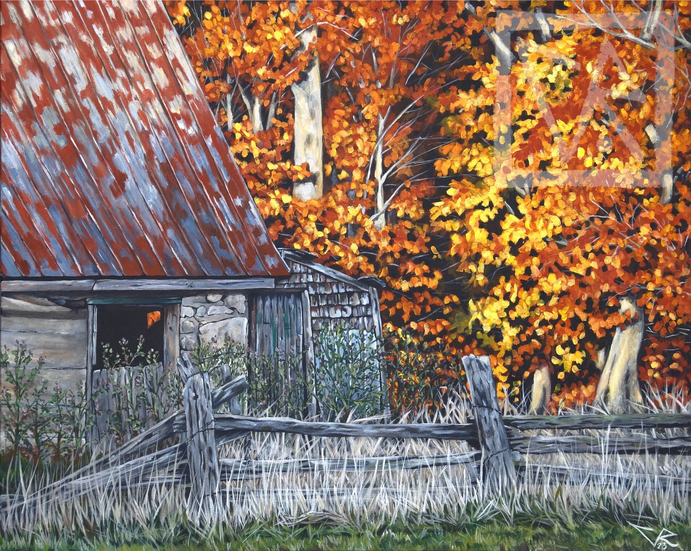 AUTUMN AT THE ADAMS’’ FARM (24”x48”, acrylic on canvas) - COMMISSION