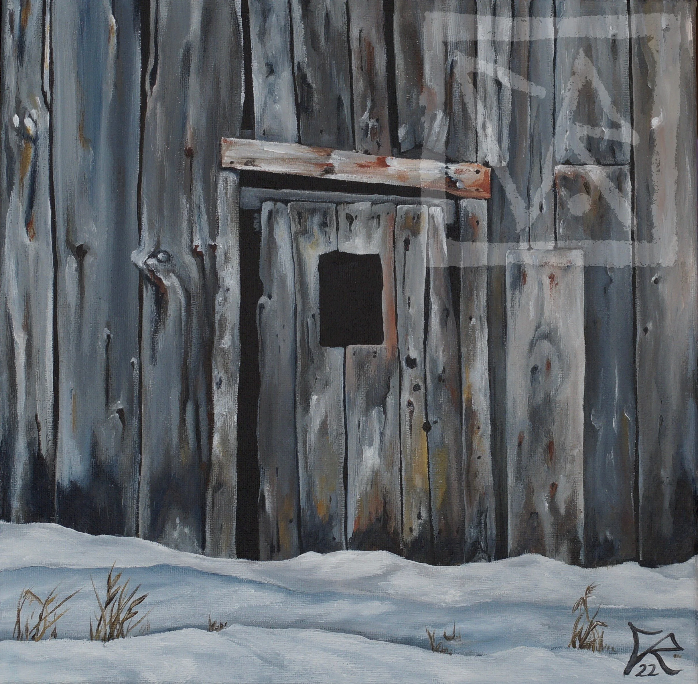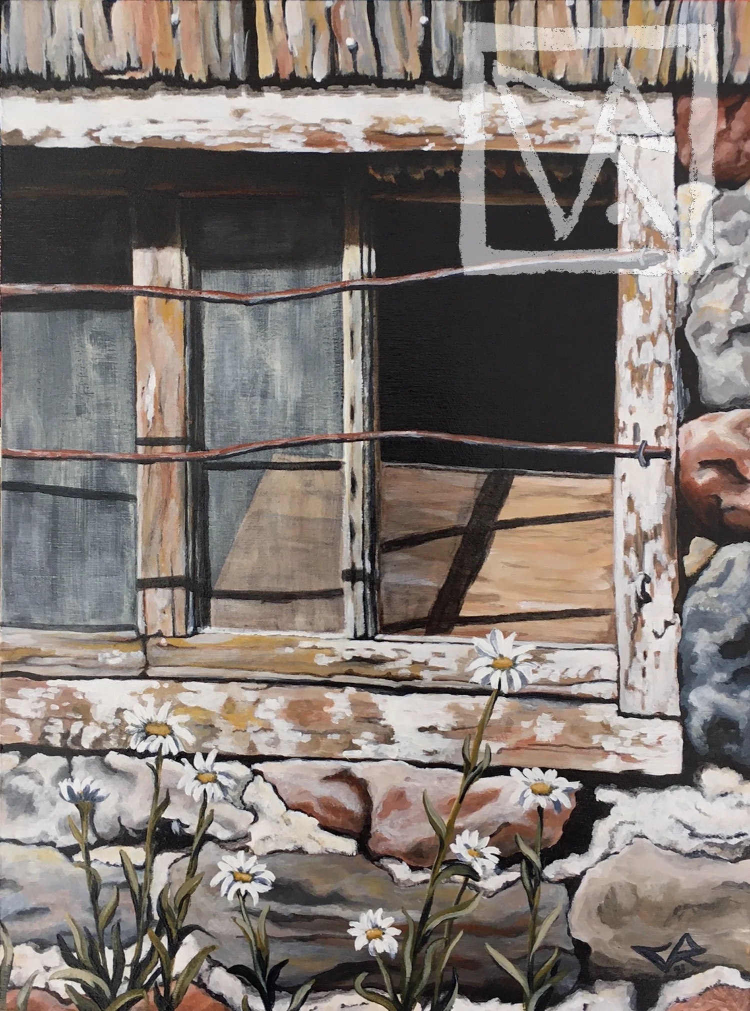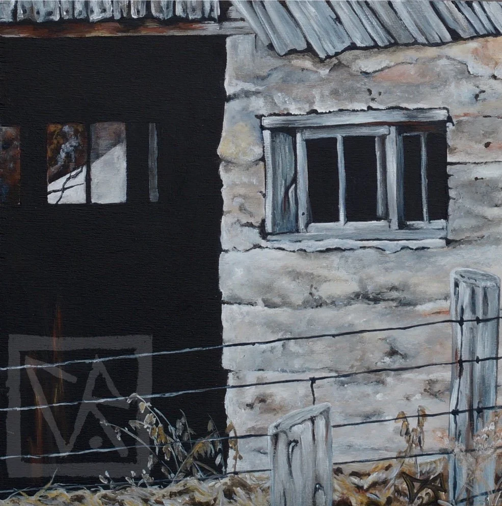 OLD BARN WINDOW (9”x12”, acrylic on panel) - SOLD