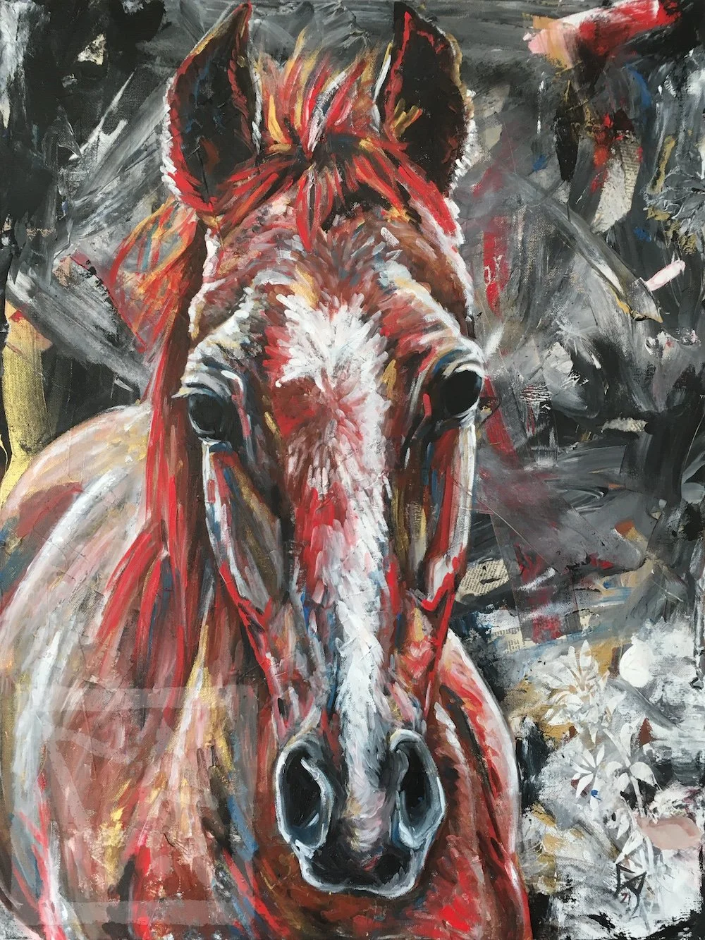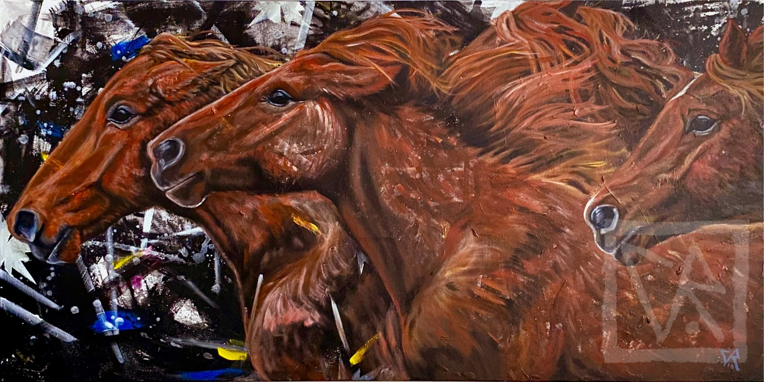 THE RED HORSES (24”x48”, acrylic on canvas)